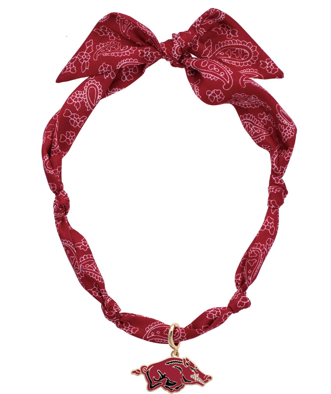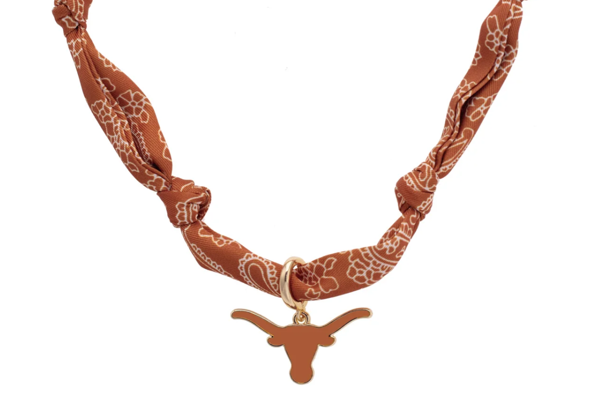 Blend fashion and fandom with the Bandana Scarf Necklace. This versatile accessory features a soft bandana scarf paired with a gold-plated logo pendant for a chic game day look.