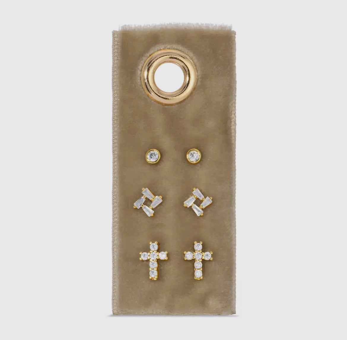 Set/3 Studs 18k Gold or Rhodium Plated Brass Base Cubic Zirconia