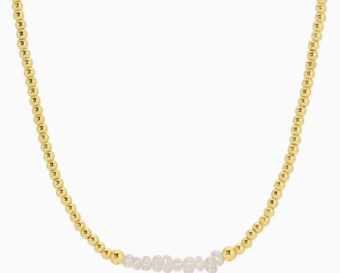 3mm beaded necklace with 9 small pearls and 4mm accent bead 15.5" Necklace Brass Plated Fresh Water Pearls