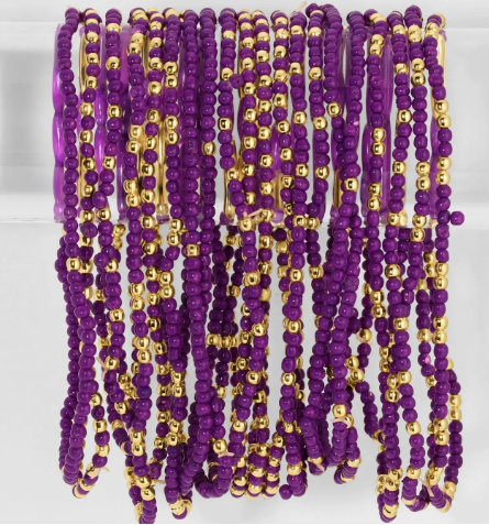 Get ready to rock your team colors with our vibrant Solid Seed Bead Game Day Bracelets! These spirited and stylish bracelets are the ultimate accessory for any dedicated fan, offering a subtle yet impactful way to showcase your team pride. Each bracelet features delicate seed beads meticulously strung together to create a lightweight and comfortable design. At the heart of each bracelet are high-quality 18K gold plated brass beads, adding a touch of luxurious gleam and ensuring durability. We know every team is unique, which is why we offer an incredible 13 color choices, allowing you to perfectly match your favorite team's colors! Set/24 Stretch bracelets Approximately 6.5 inches 18k Gold Plated Brass Base 2mm Seed Beads