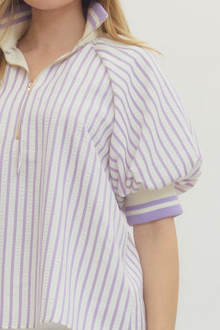 The Heather Striped Puff Top