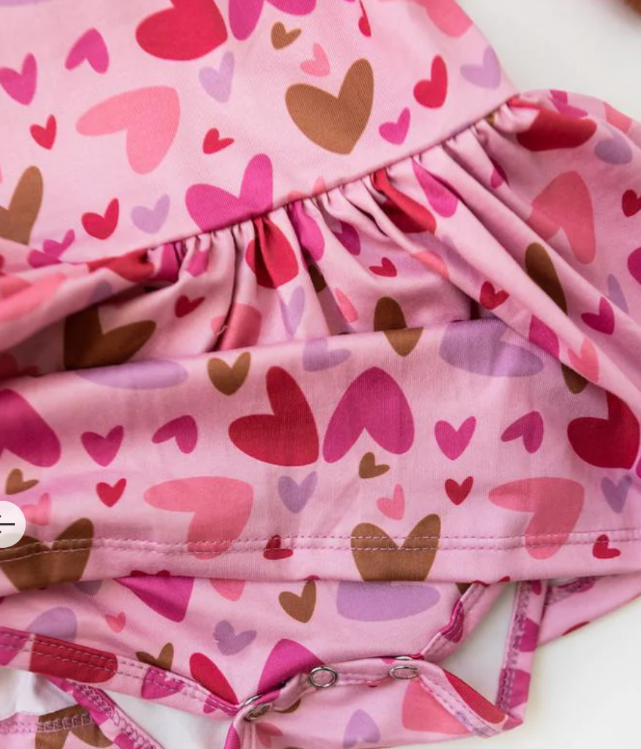 Our twirl flutter bodysuit is the newest addition to our twirl line.  Perfect for babies!  Snap closure for diaper changes AND no need for bloomers.  Matching twirl dress available for big sis, cousin, or BFF.