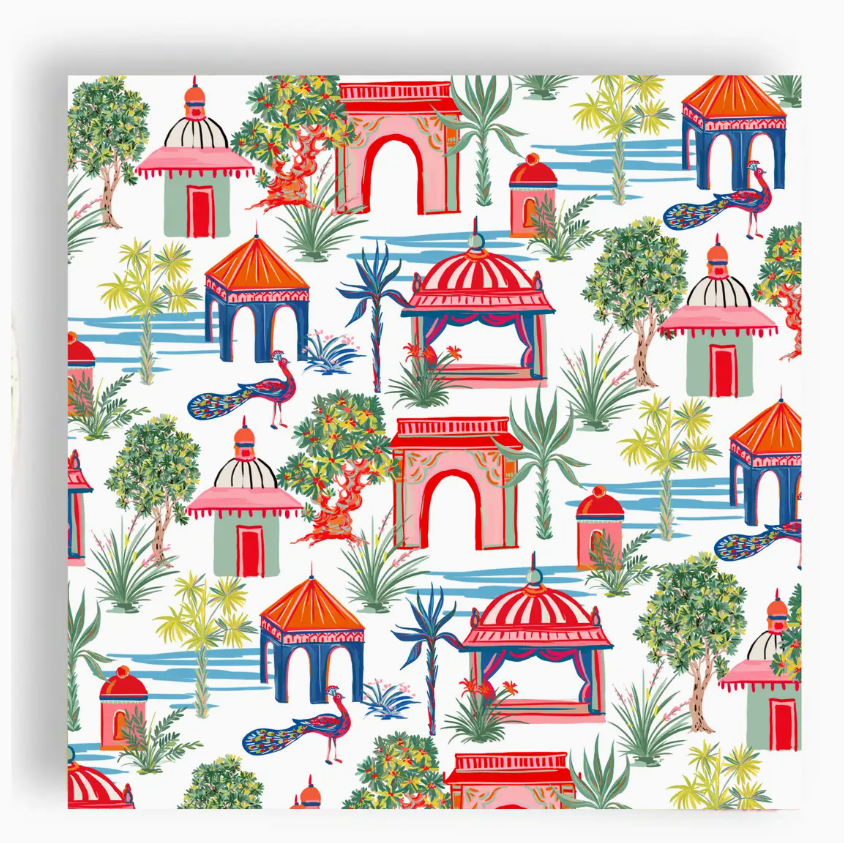 Bring refined charm to any celebration with “Chromatic Chinoiserie” cocktail napkins. Featuring a striking red, blue, and white floral and pagoda design, this 24-count pack adds an elegant accent to drink service, dessert tables, and festive gatherings. Made from soft, absorbent 3-ply paper and designed in the USA, these napkins deliver both style and function—perfect for gift shops, party boutiques, and retailers seeking globally inspired, high-quality disposable tableware. Details: • Includes 24 qty cocktail napkins (5" square, 3-ply) • Red, blue & white chinoiserie floral and pagoda design • Soft, absorbent, premium-quality paper • Designed in the USA; made in China • Packaged for retail display • Pairs with the full “Chromatic Chinoiserie” collection