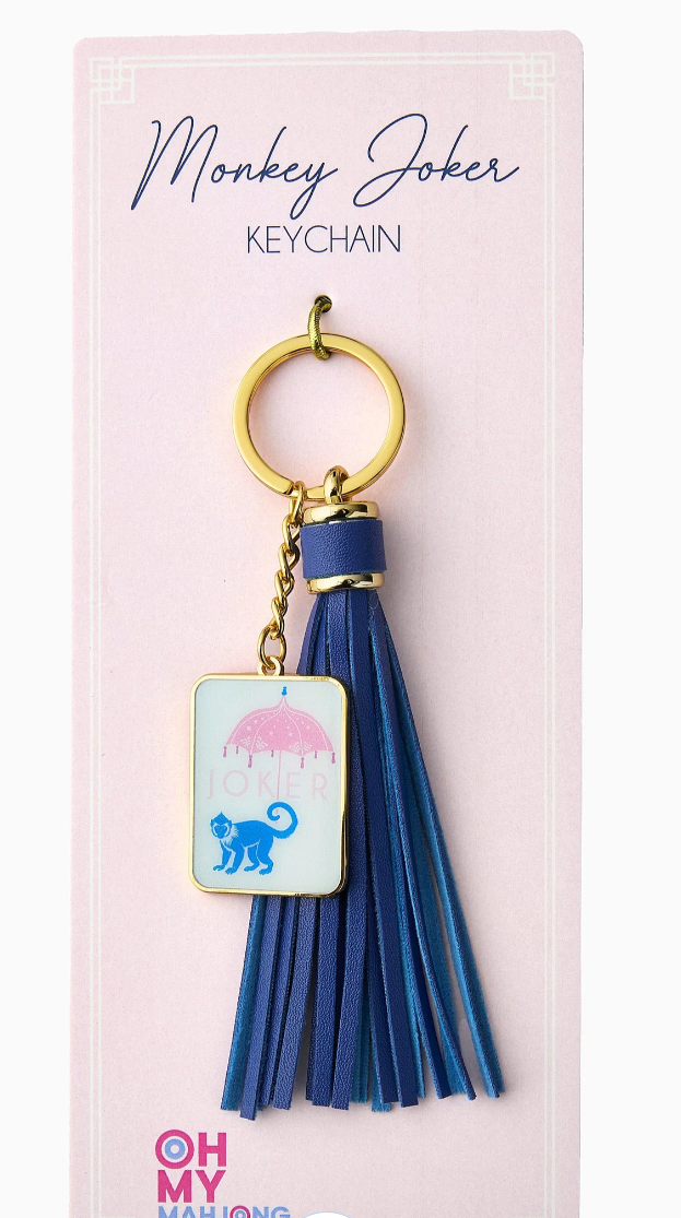 Add a playful twist to your essentials with our Monkey Joker Keychain, inspired by one of the most beloved tile designs from our Limoncello Tiles. This fun and cheeky keychain showcases the adorable Monkey Joker tile, complemented by a coordinating tassel for a dash of flair. Perfect for bringing a sense of fun to your daily routine, this keychain is not only a stylish accessory but also a great conversation starter for fellow mahjong lovers. With its cute design and playful energy, it’s the perfect way to carry a little joy wherever you go.