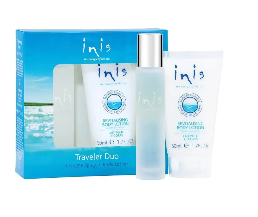 Take your favourite refreshing scent anywhere you go with this set of travel-friendly sizes. An incredible special value, our Traveler Duo is also a great way to sample Inis the Energy of the Sea.