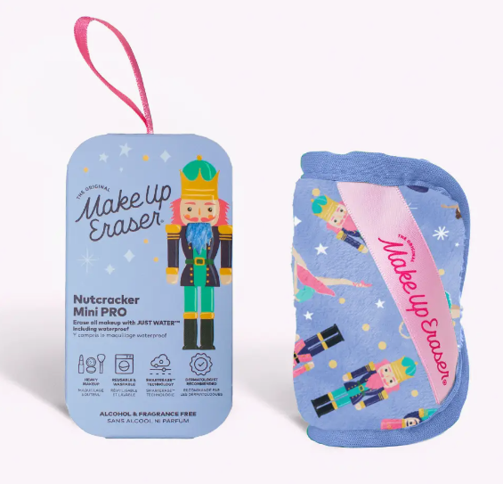Giftable Ornament: 1 Mini PRO MakeUp Eraser, 8in x 4in. Erase all makeup with JUST WATER™ including waterproof. Our patented, water-activated, cloud-soft fibers gently & easily remove all makeup, face masks & sunscreen from pores. 2 in 1 benefit: one side erases makeup & one side exfoliates skin. ✓ Dermatologist Recommended for sensitive skin ✓ SmartErase™ Technology ✓ Reusable & machine washable ✓ Great for heavy makeup ✓ Alcohol & Fragrance Free Non-irritating and non-drying, making it perfect for sensitive skin. It's non-comedogenic, safe for lash extensions, & entirely oil-free for a fresh, comfortable experience. How? Wet with warm water. The warmer, the wetter, the better! Use gentle circular motions to erase makeup with the short fiber side. Flip to long fiber side (side with tag) to exfoliate the skin. Care? Machine wash hot & dry. Dryer sheet & fabric softener safe.