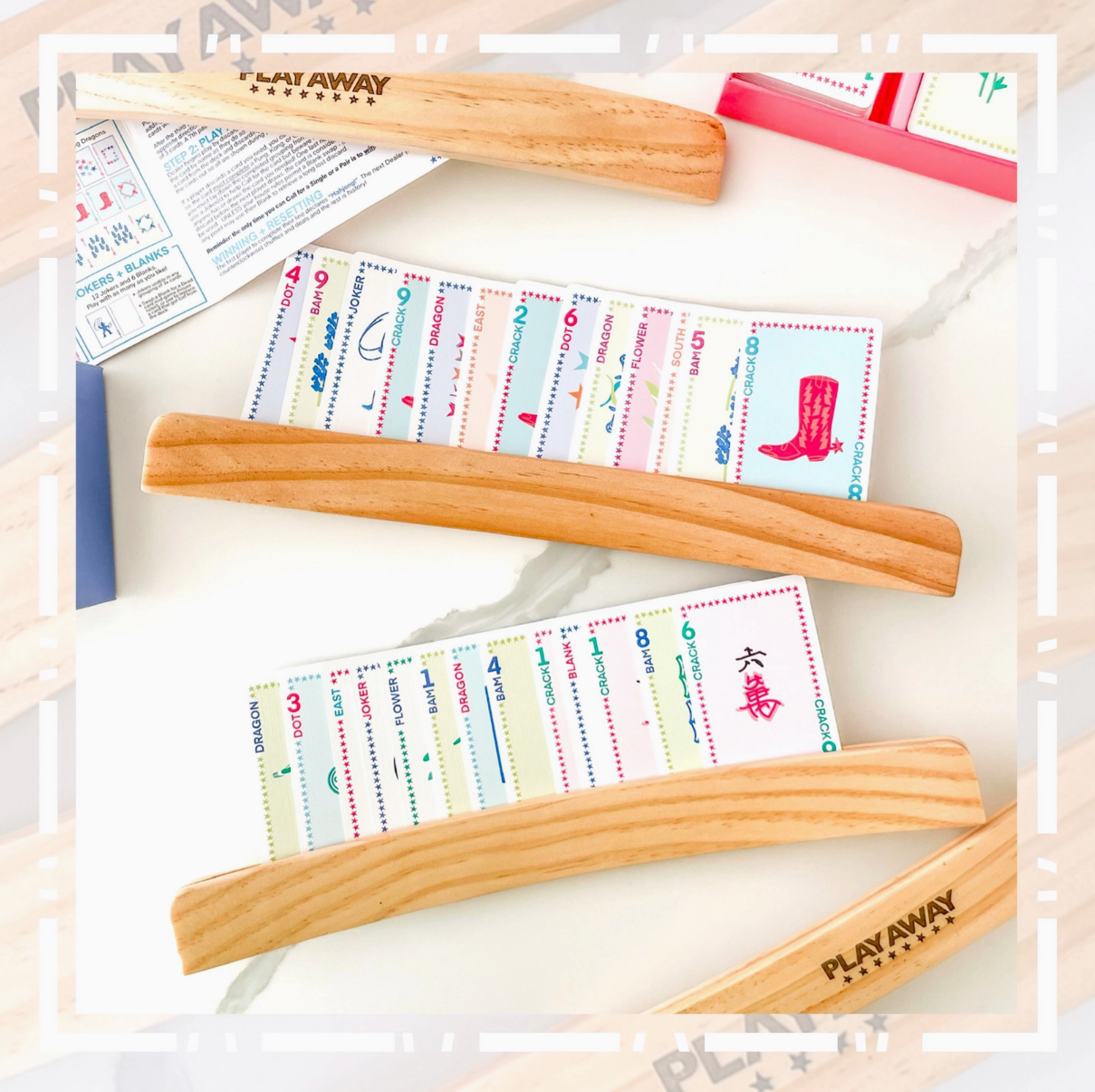 These card holders are a great addition to game night! Though we thoughtfully designed the cards to be easy to read when held, the racks are great for spreading out your cards and keeping your hands free while you play (making it easier to cheers for Bird Bam!). Though not necessary to play with your Play Away deck, we think it adds to the experience and feels even more like playing with traditional tiles! Also great for little hands or those who may have trouble gripping cards. Use them for any card game- Gin, Rummy, Bridge, etc! Sold as a set of 4