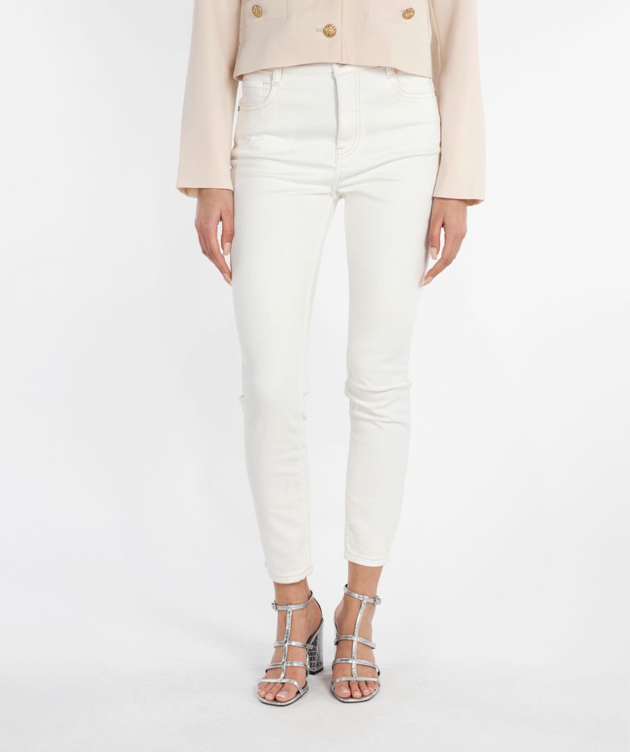 Neutral high rise slim jeans in a 5-pocket model. These jeans have a tight fit. The jeans contains stretch and therefore has a comfortable fit.