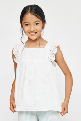 Lace Shoulder Eyelet Peplum Top