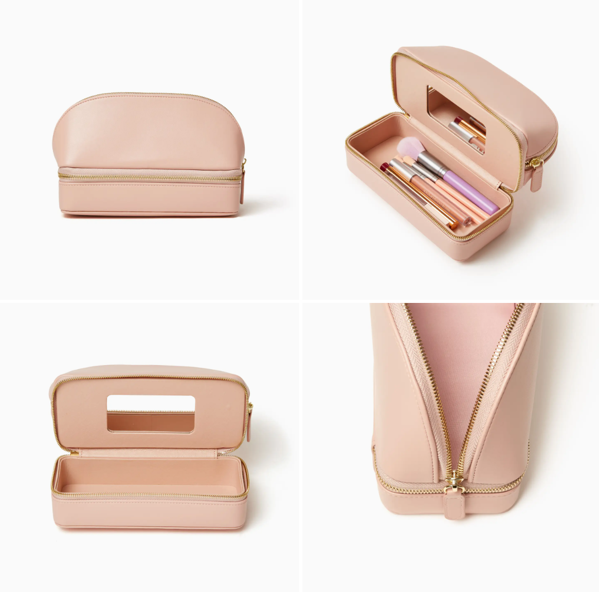 You will love this perfectly designed travel accessory! This duo travel storage solution has a zippered pocket on top for your everyday essentials, the bottom compartment unzips to reveal a storage space for necklaces, earrings, bracelets and rings. Made from sturdy and durable vegan leather, this Duo Organizer is the perfect solution for the savvy traveler. Available Colors: Black, Pearl White, Gold, Pink, Brown, Red, Orange. Dimensions: 8.25"L x 3.75"W x 5.50"H