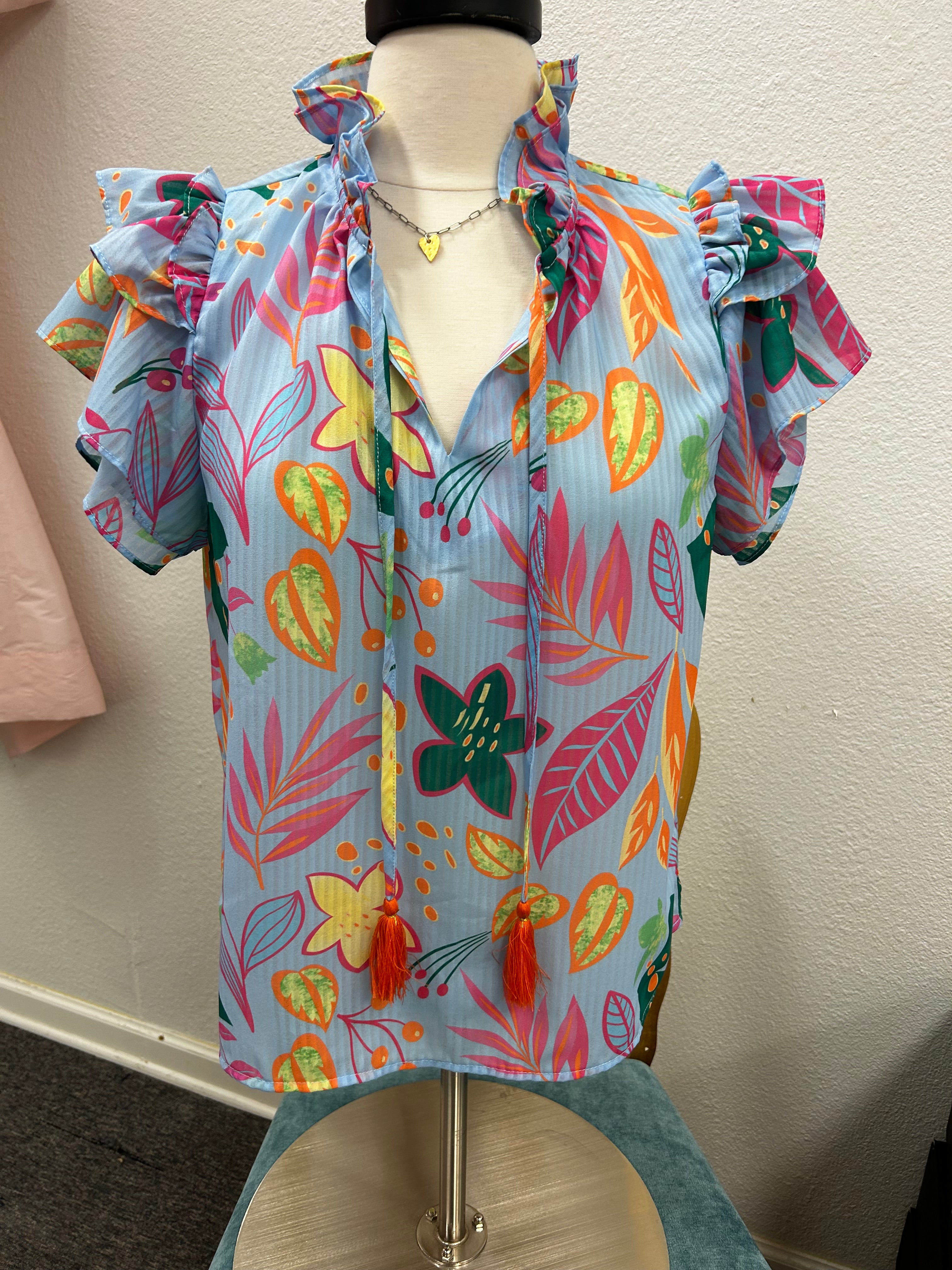 Gorgeous Tropical Chiffon blouse with orange tassel