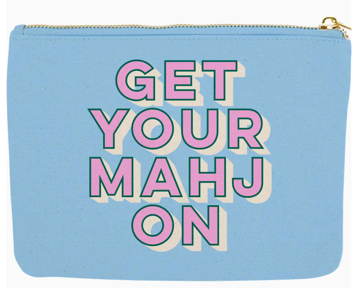 Get Your Mahj On - Zip Pouch Our high quality canvas zip pouch is the perfect pouch for any Mahjong lover to store all your gaming necessities, money, makeup, travel essentials or any loose items. A perfect gift for your Mahjong buddy or anyone on your list. 8.75" x 6.75" canvas pouch