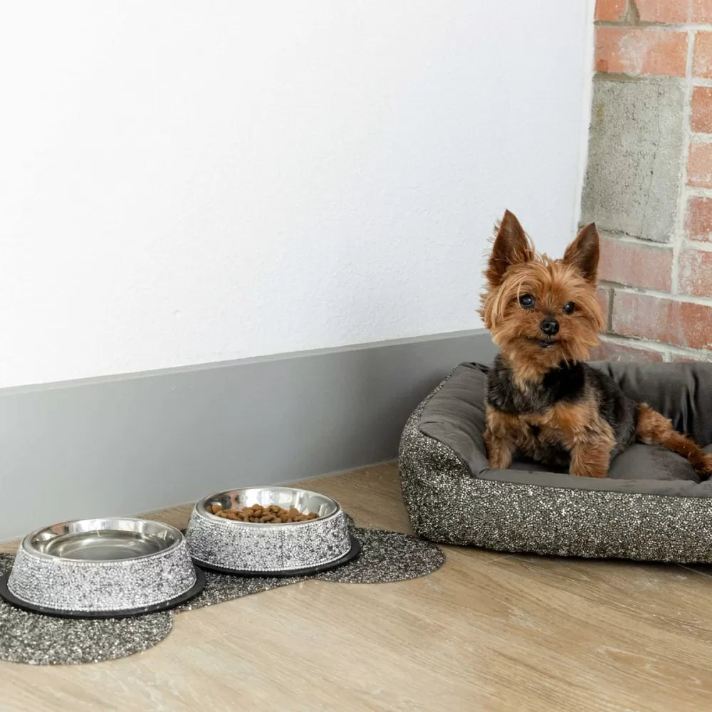 Sparkles Dog Bone Placemats feature a long lasting and durable material that can be used with every breed for both indoors and outdoors. Just wipe clean with a damp cloth or run under water, and these will be ready to use again and again. Just the right touch of bling for the pooch with a discriminating palate!