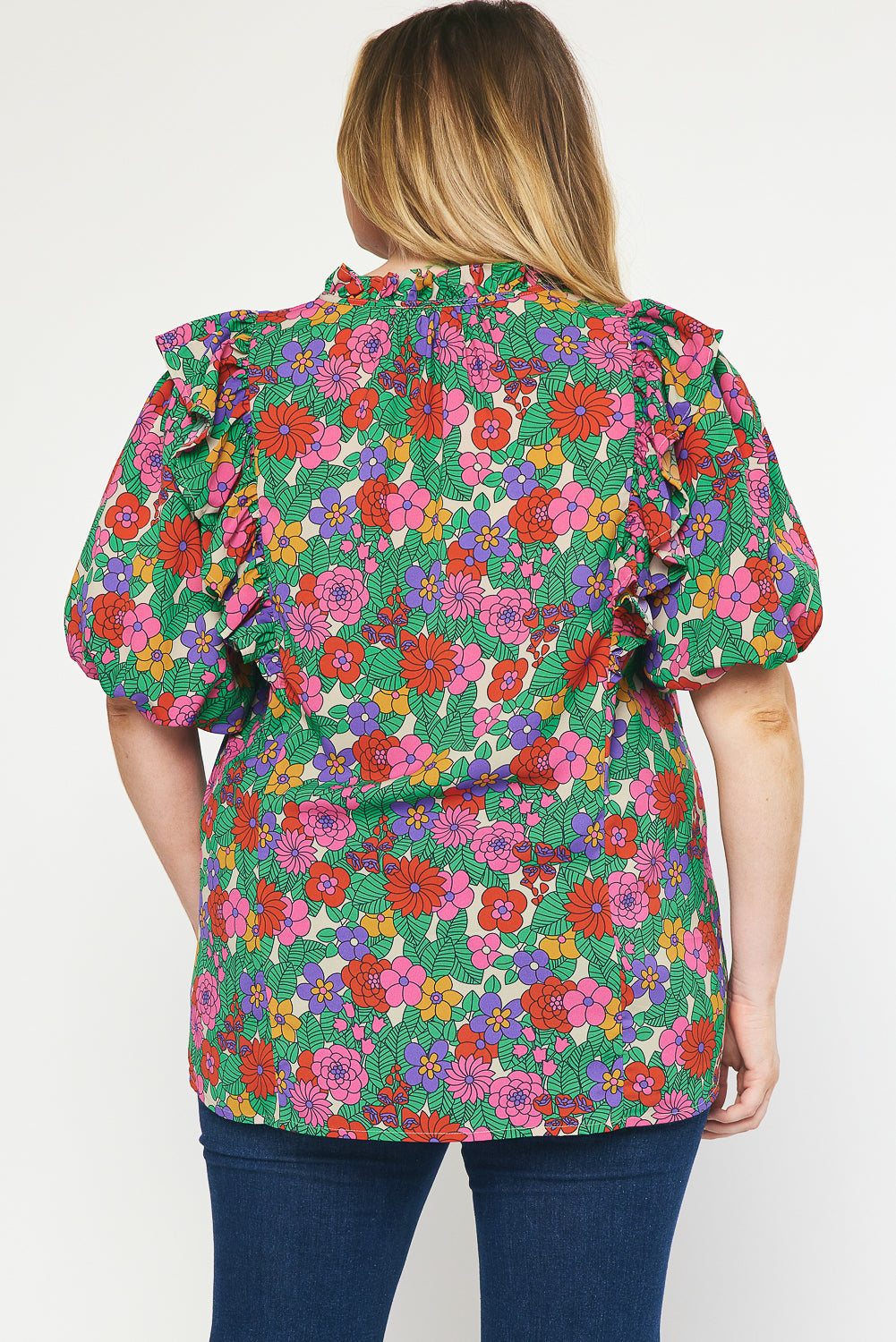 Floral Blouse with puff sleeve. Beautiful for Fall transition